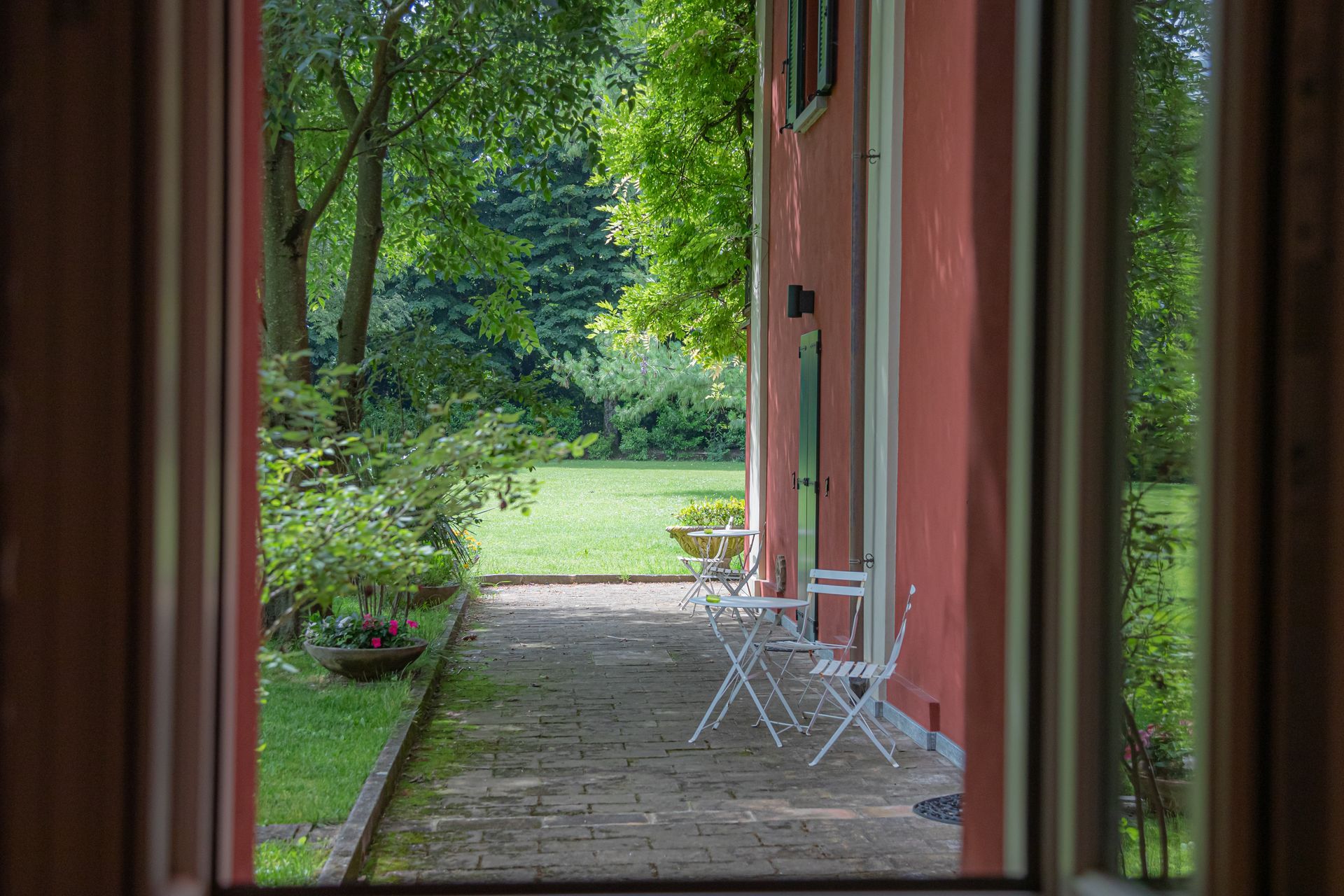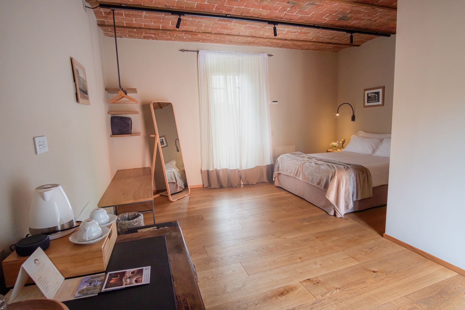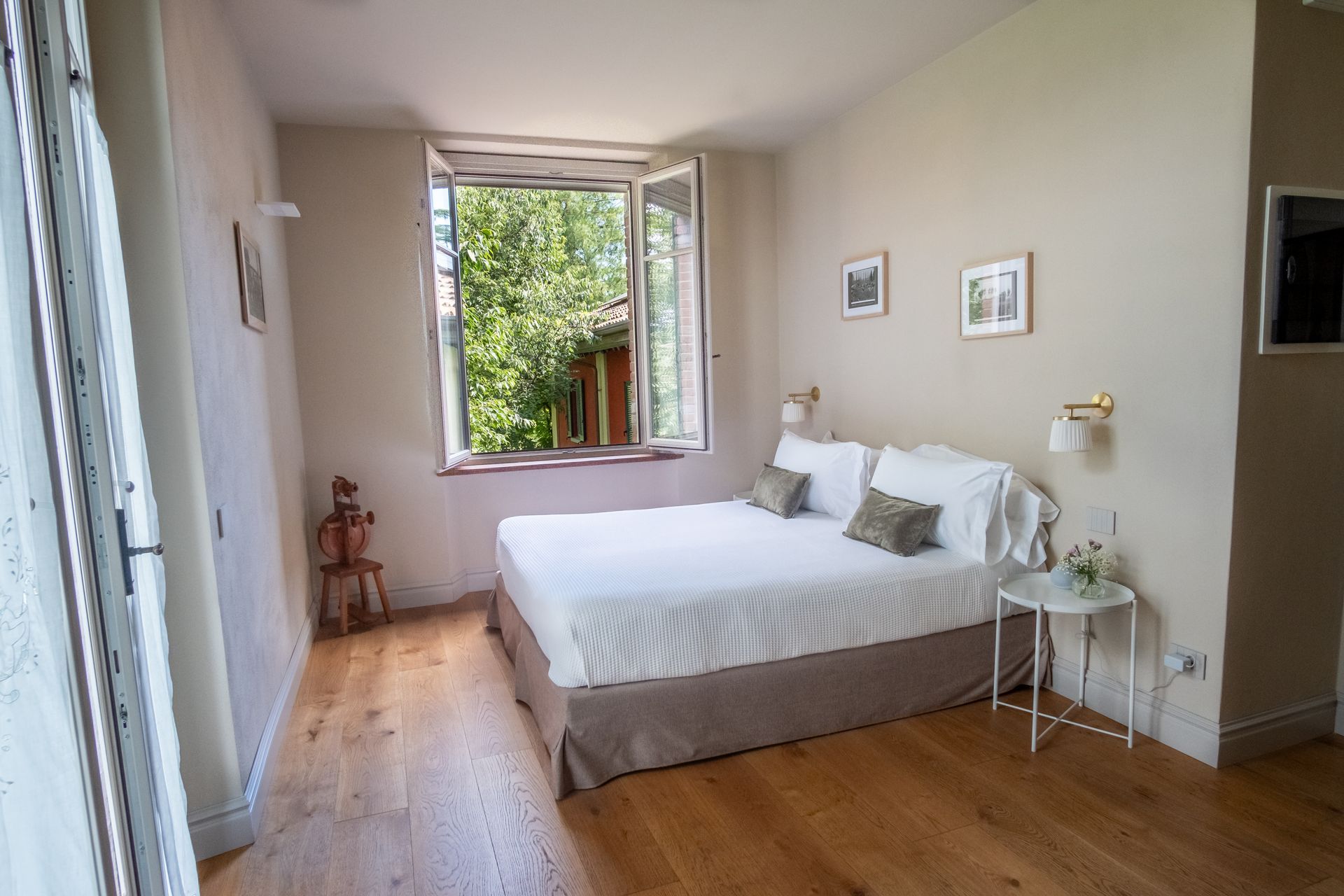 Immersa nel verde della Tenuta con i due ingressi indipendenti, la camera ti permette di godere del verde, degli spazi all'aria aperta e della splendida luce dell'alba che filtra dalle finestre la mattina.