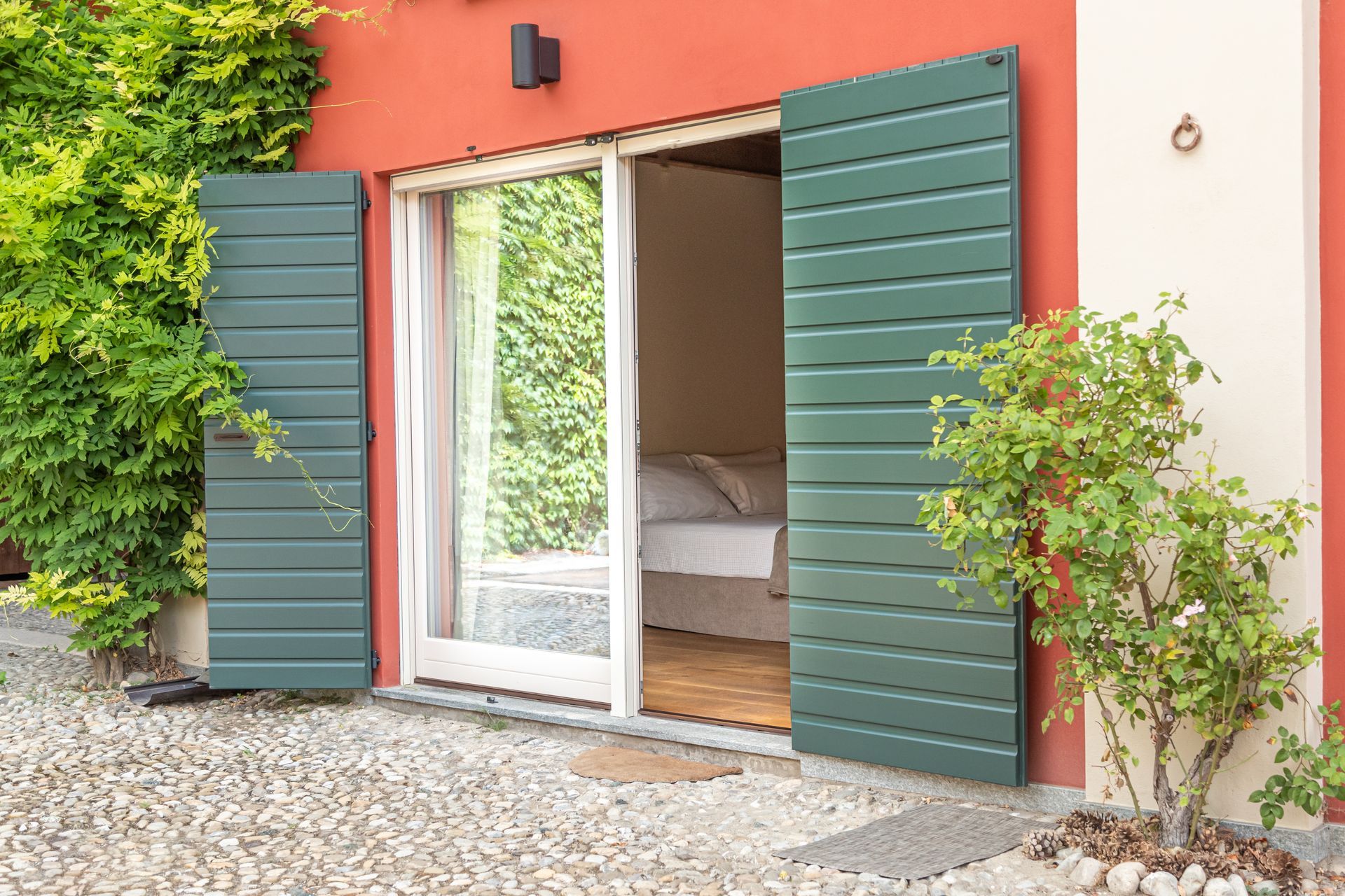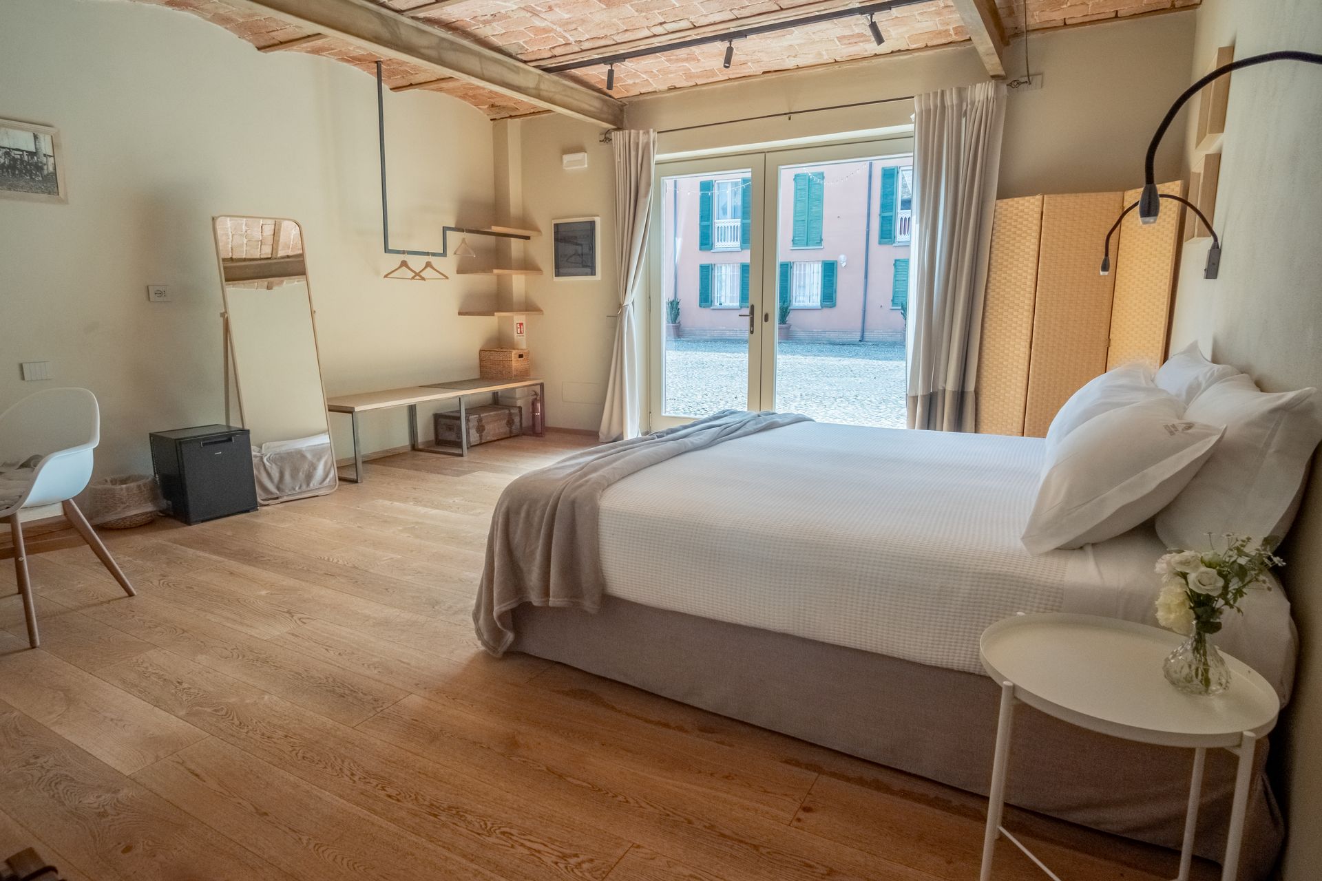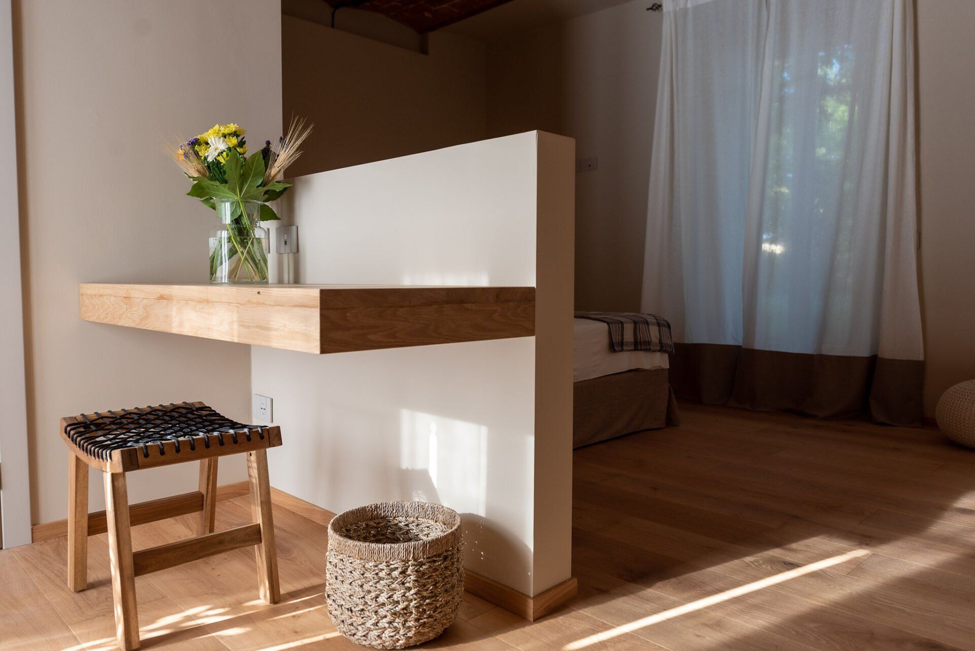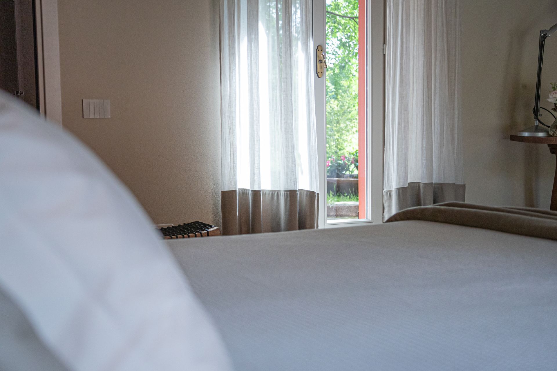 Immersa nel verde della Tenuta con i due ingressi indipendenti, la camera ti permette di godere del verde, degli spazi all'aria aperta e della splendida luce dell'alba che filtra dalle finestre la mattina.