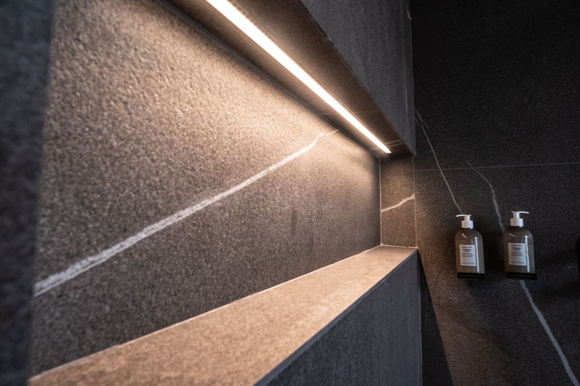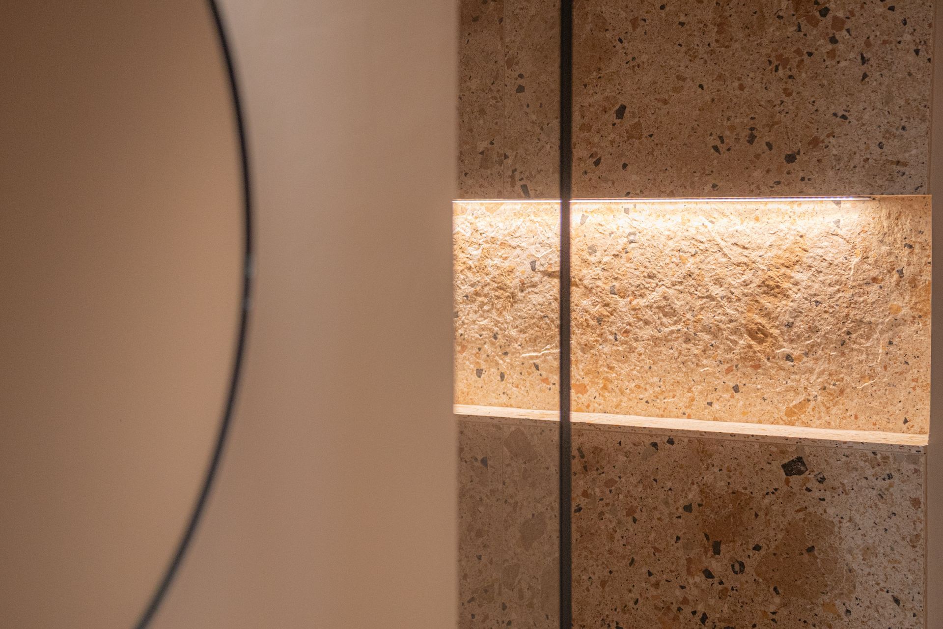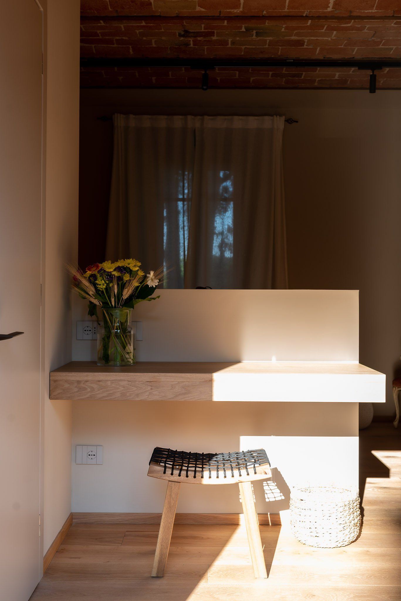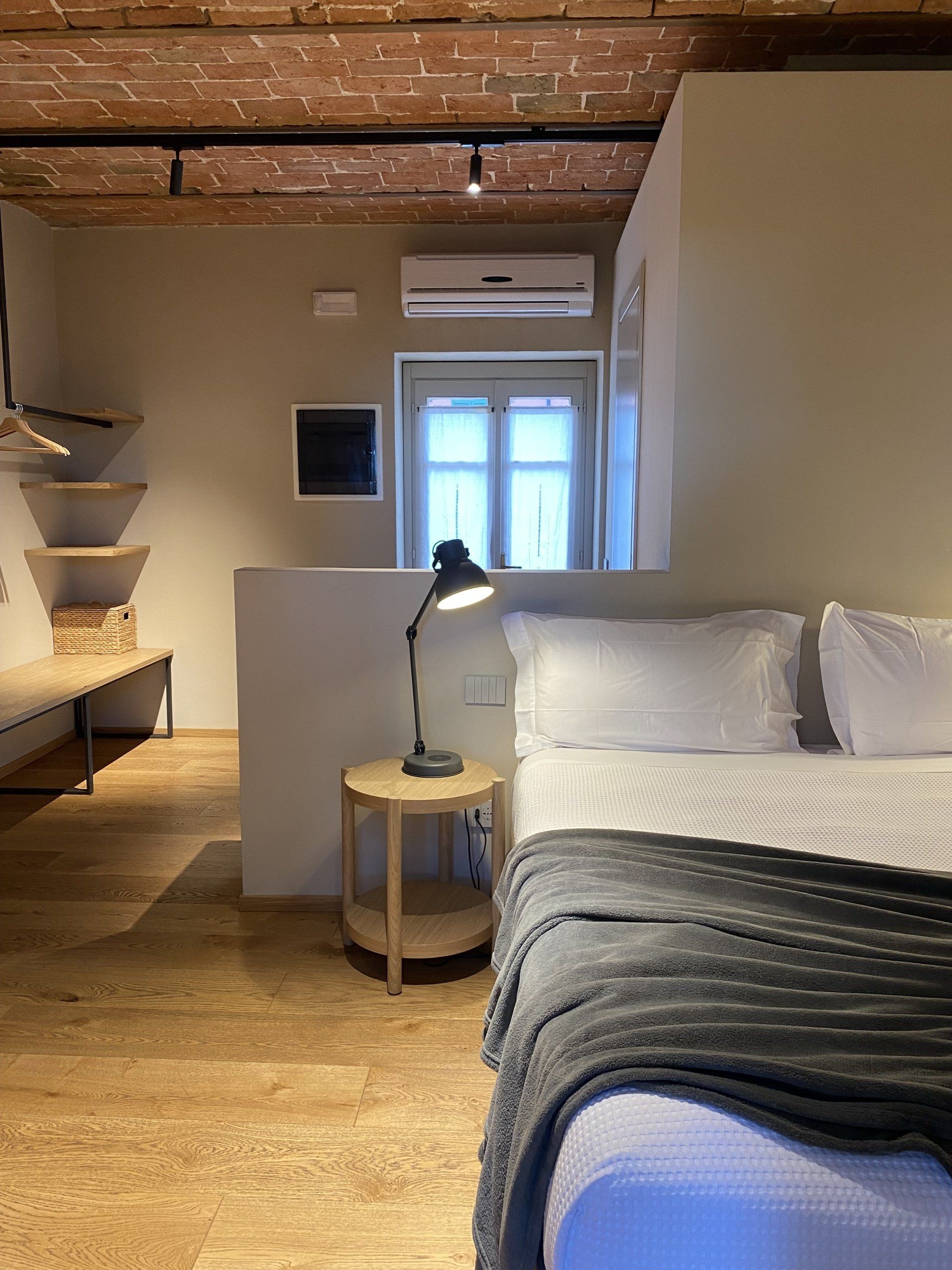 Tipico soffitto a volte di mattoni, reso moderno da faretti di ultima generazione.