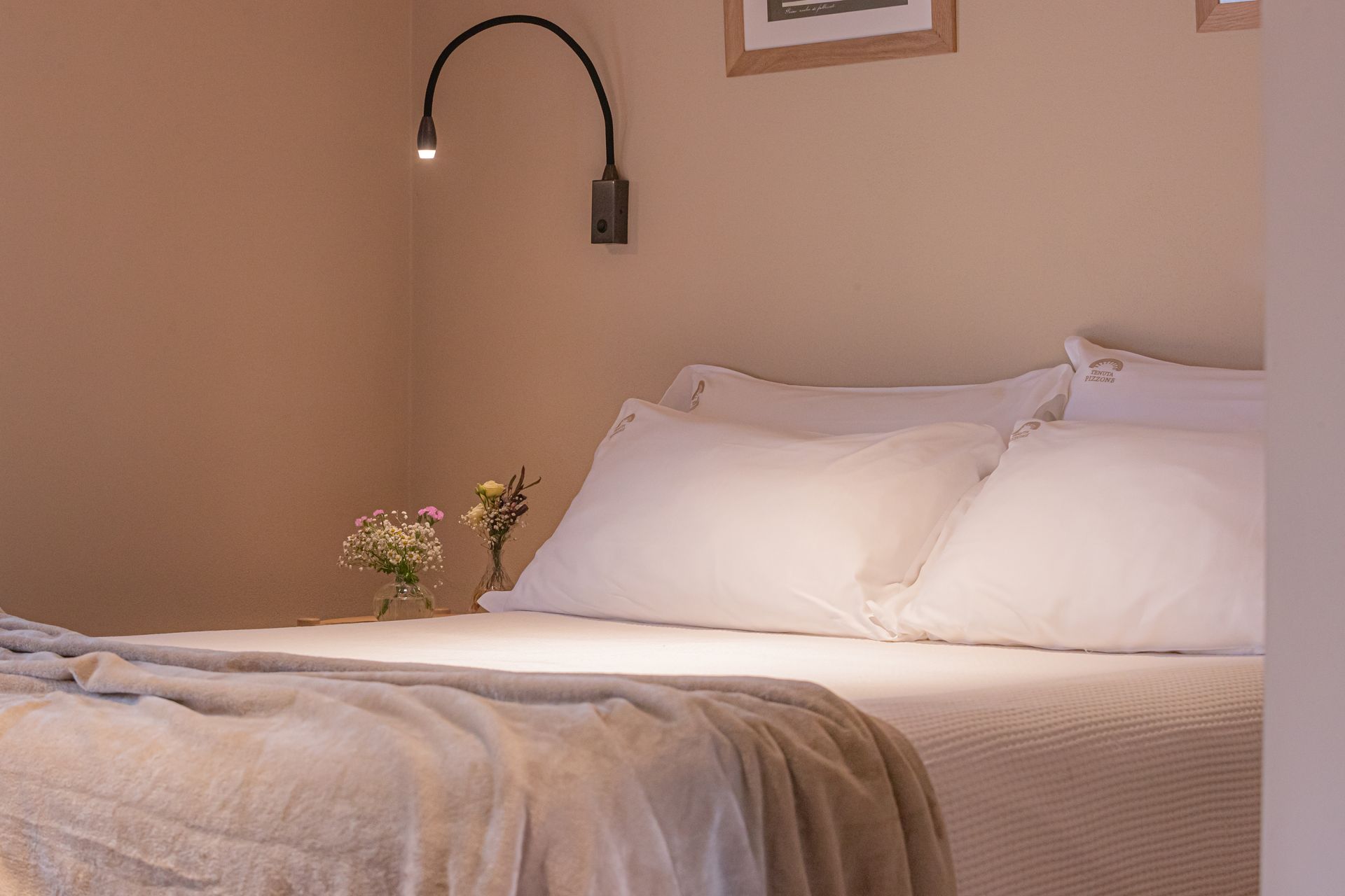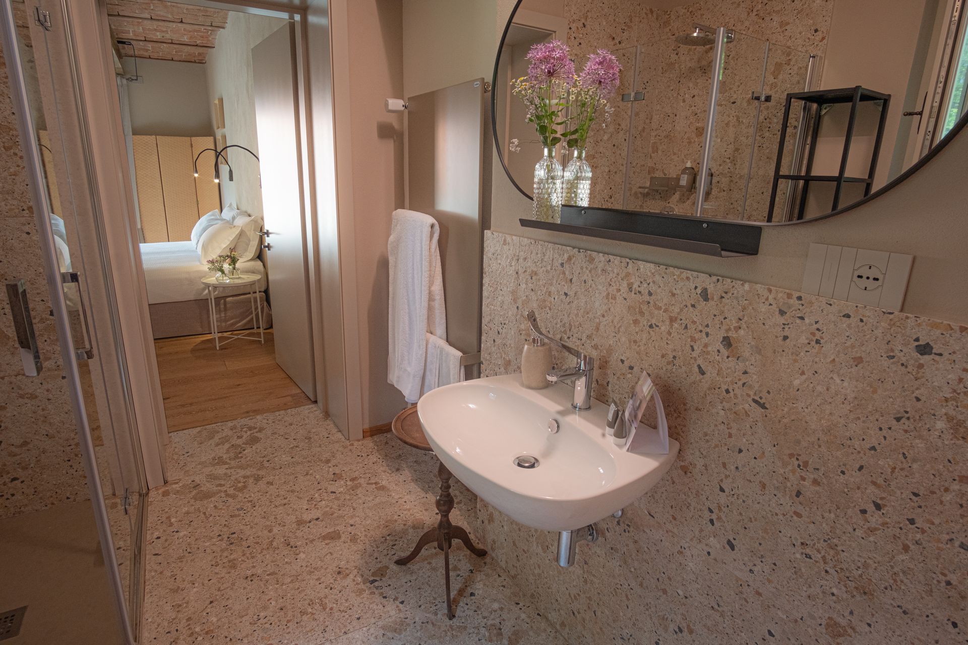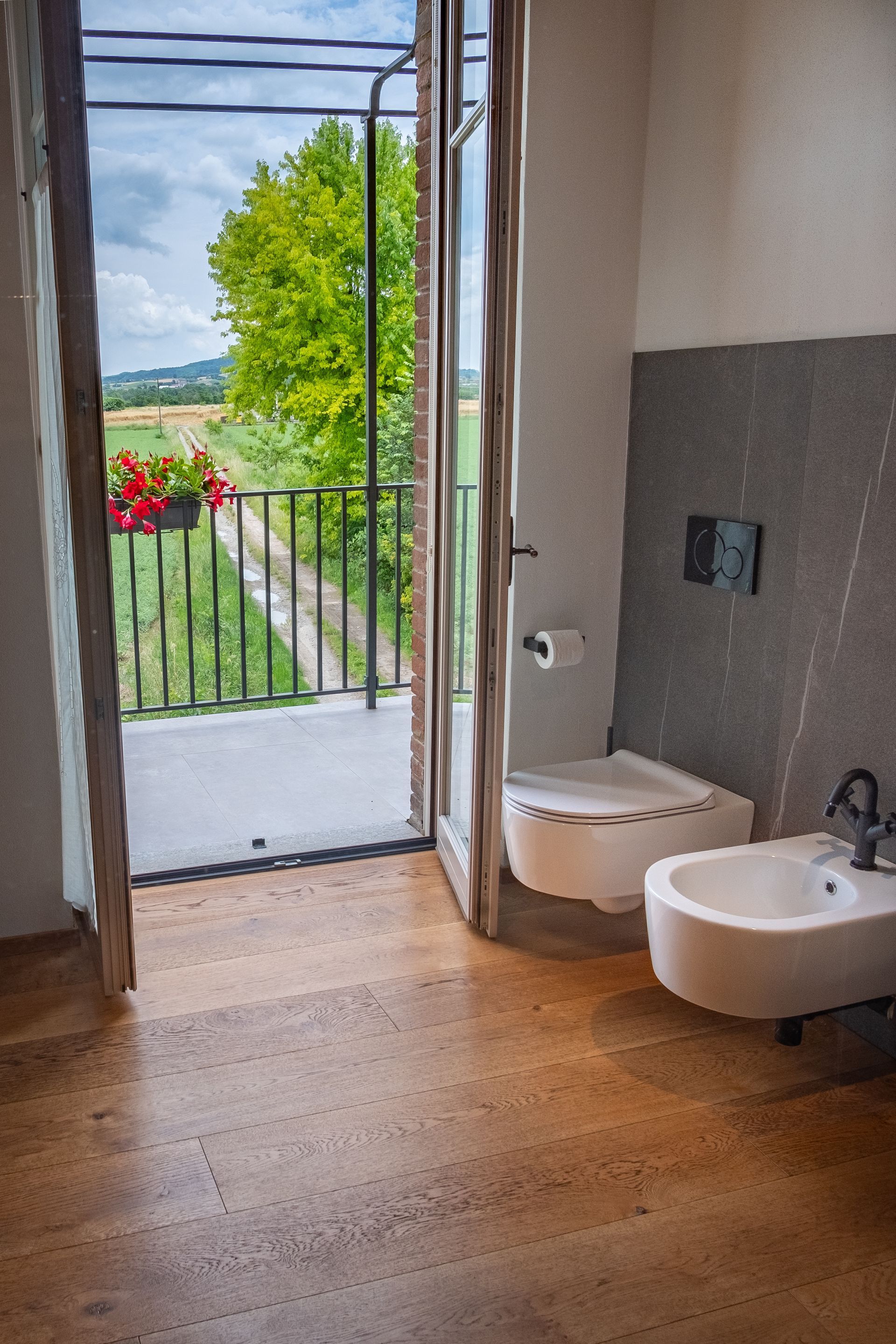 Camera matrimoniale deluxe con balcone che collega il bagno e la camera. Luminosa, spaziosa e curata nei minimi dettagli la camera 5 è la miglior camera della Tenuta.