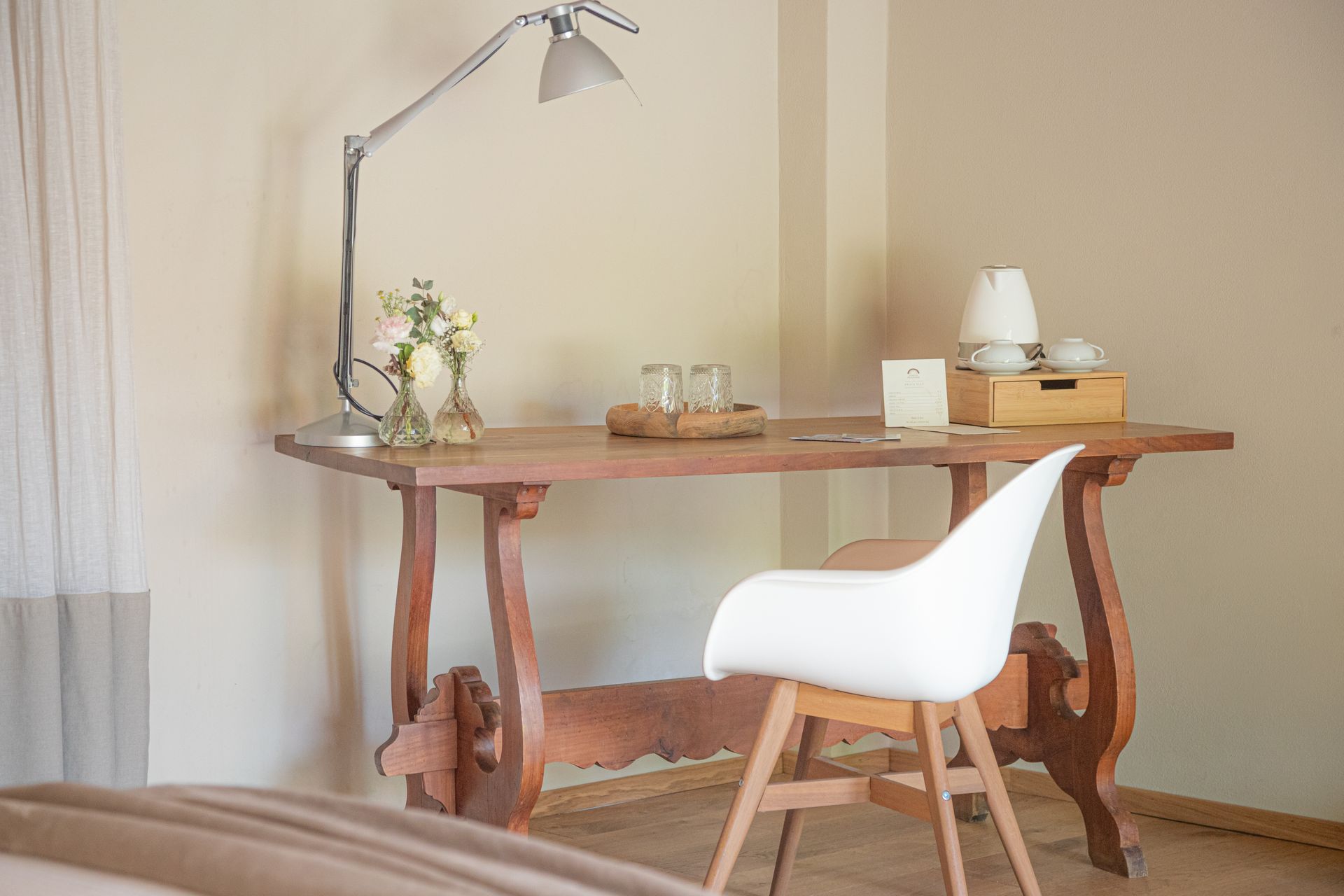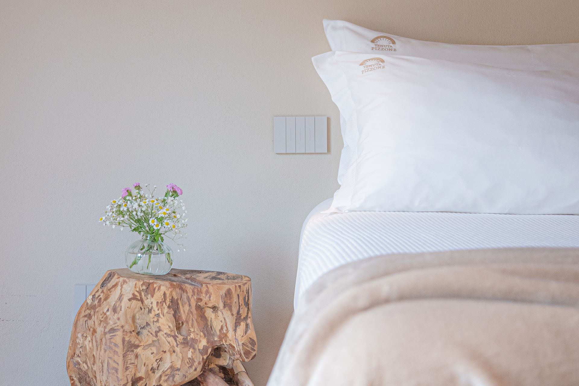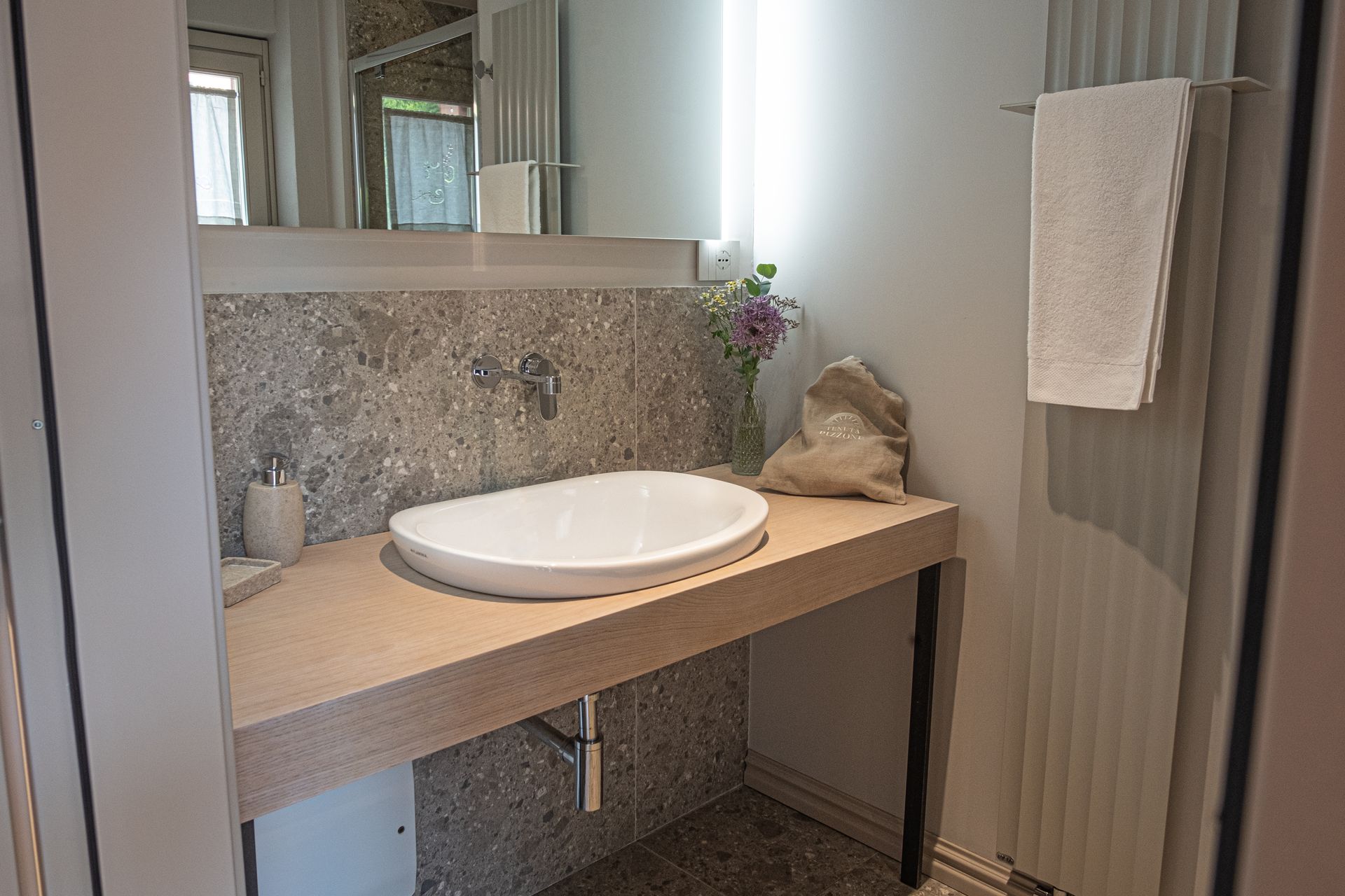Camera matrimoniale deluxe con balcone che collega il bagno e la camera. Luminosa, spaziosa e curata nei minimi dettagli la camera 5 è la miglior camera della Tenuta.