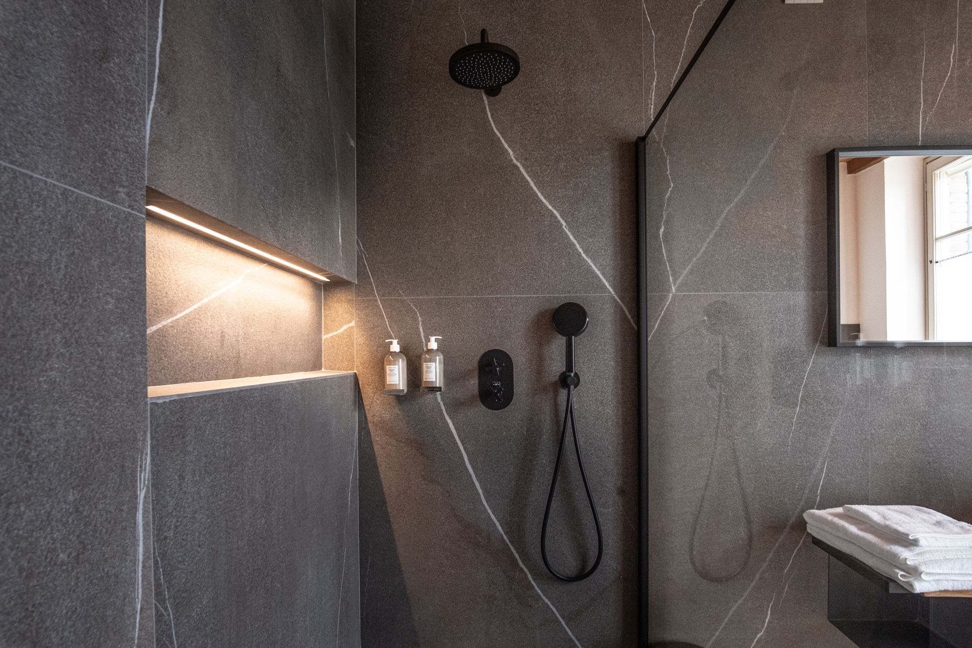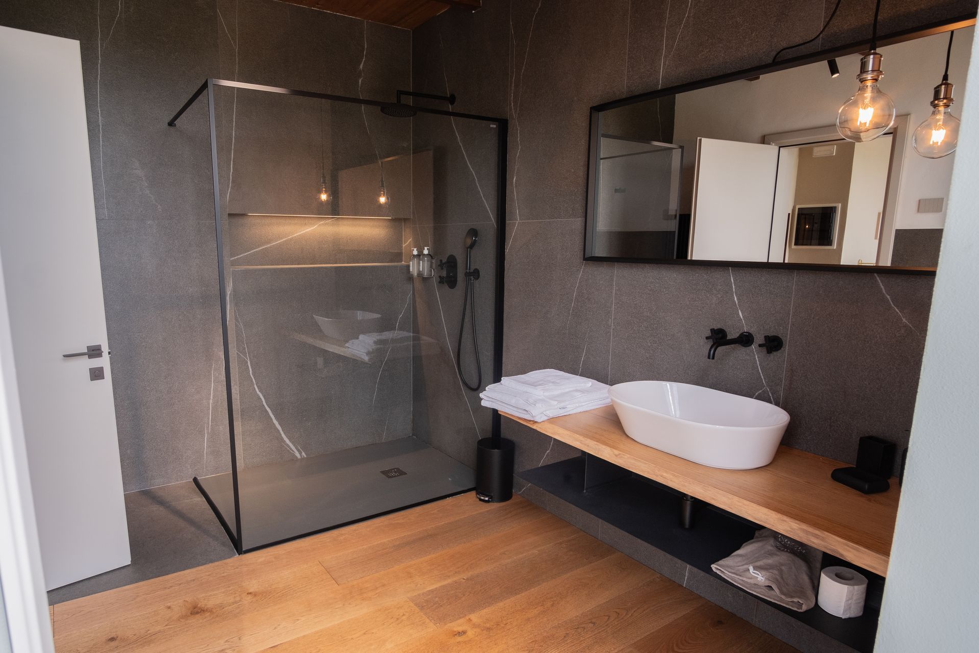 Soprannominata camera del camino, camera matrimoniale deluxe molto ampia con il bagno che lascia senza fiato. Una doccia iper moderna abbinata a gusti tradizionali. Una combinazione meravigliosa che rende l'ambiente caldo e confortevole.